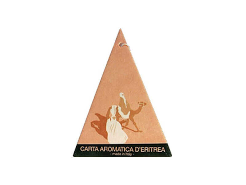 Il profumatore per auto alla fragranza Carta Aromatica d’Eritrea è di pura cellulosa imbevuto nell’Essenza Aromatica d’Eritrea (resine, muschi, oli essenziali naturali e profumi a norma IFRA).